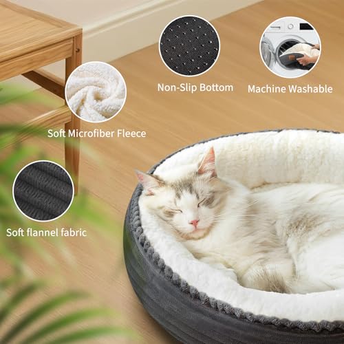 Zerbuger 23in Round Cat Dog Bed for Large Medium Small Dogs Cats, Machine Washable Sleeping Sofa, Non-Slip Bottom Breathable Soft Calming Pet Cuddler for Indoor/Outdoor/Car/Cage, Dark Grey