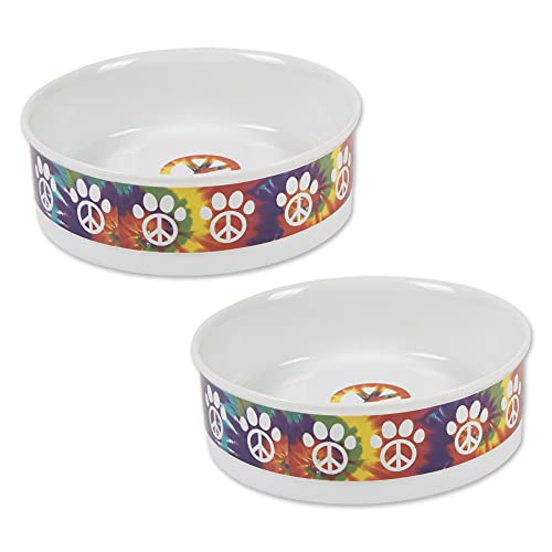 Bone Dry Ceramic Food Bowls, Non-Slip & Dishwasher Safe, Large Set, 7.5×2.4, Peace Paw, 2 Count