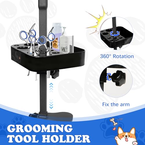 Breeze Touch Rotatable Dog Grooming Organizer for Dog Grooming Table Accessories, Portable Pet Grooming Tools Holder Dog Grooming Arm with Clamp for Hairdressing Scissors Combs, Pet Shop Pet Owner