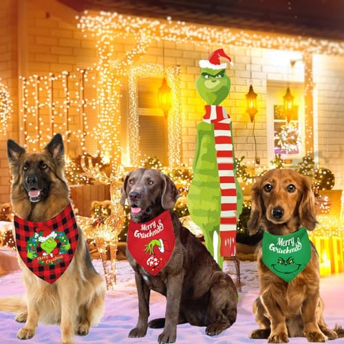 Christmas Dog Bandana 3Pack Grinchs Triangle Bandanas for Boy Girl Dog Costume Cute Pet Scarf Bibs Kerchief, Merry Christmas Outfit Accessories Xmas Holiday Bandanas for Medium Large Dog (Medium)