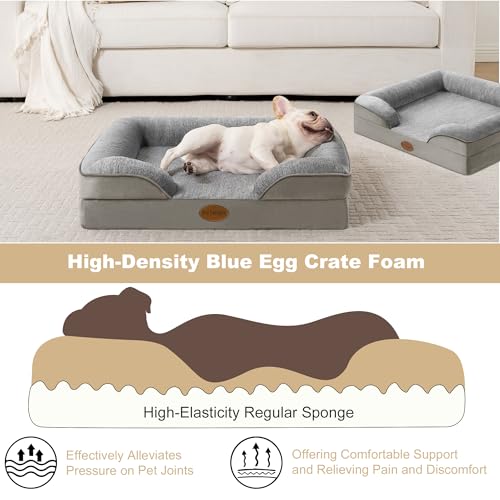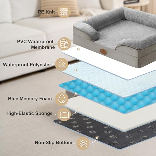 Tailwaggz Cooling Pet Bed for Medium Dogs and Cats, Waterproof Orthopedic Dog Sofa Bed, Supportive Foam Pet Couch Bed with Washable Removable Cover, Waterproof Lining and Nonskid Bottom(Medium, Grey)
