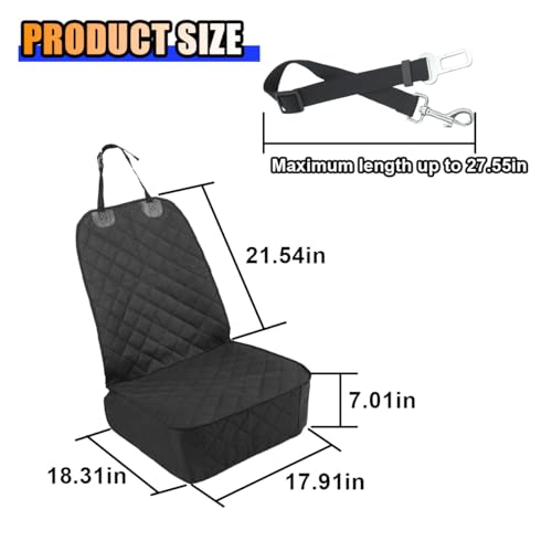 Dog Car Front Seat Cover with Side Flaps, Waterproof & Scratch Proof Car Seat Protector for Dog, Nonslip Pet Car Seat Pad with Safety Belt, Fit for Most Cars SUVs Trucks Jeeps (Black)