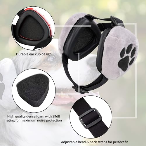 Dog Ear Muffs Noise Protection (29dB), Dog Noise Cancelling Ear Muffs, Anxiety Protection From Fireworks, Thunderstorms (Paw, M)