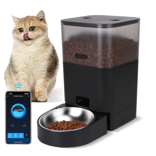 Nobleza Automatic Cat Feeder, WiFi 4.2qt Large Container Automatic Dog Feeder Dispenser with Slow Feeding Sensor, Easy Setup with Dual Power Safety Material Cat Food Dispenser