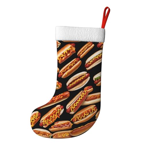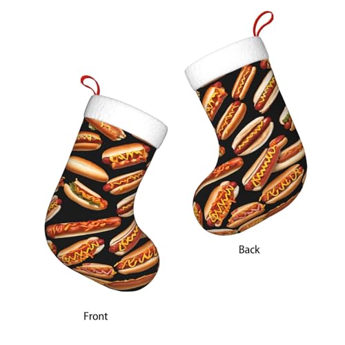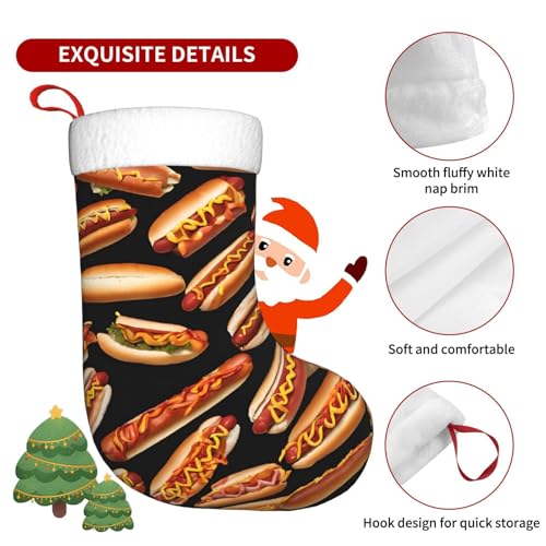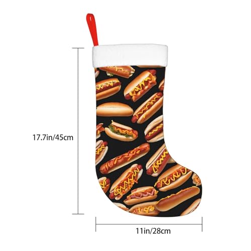 Personalized Print Christmas Stockings Stuffers Christmas Hanging Decorative for Xmas Gifts Holiday Family Party Fireplace Stairs Ornament, Fun Food Hot Dogs