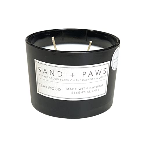 Sand + Paws Scented Candle – Teakwood – Additional Scents and Sizes –Luxurious Air Freshening Jar Candles Neutralize pet Odors and Enhance Home décor – 100% Cotton Lead-Free Wicks – 12 oz