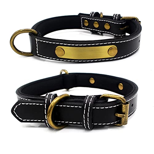 Yonsbox Personalized Leather Puppy Dog Collar and Leash Set with Soft Padded Name Plate Engraved Custom Adjustable Black Dog Collars Leashes for Male Female Boy Girl Small Medium Large Dogs